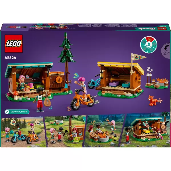Zestaw LEGO® Friends Przytulne domki na obozie przygodowym (42624) dla dzieci w wieku 7+ zawiera 3 minilaleczki, lisa i wiele akcesoriów kempingowych, aby chłopcy i dziewczynki mogli przeżywać wspaniałe przygody.