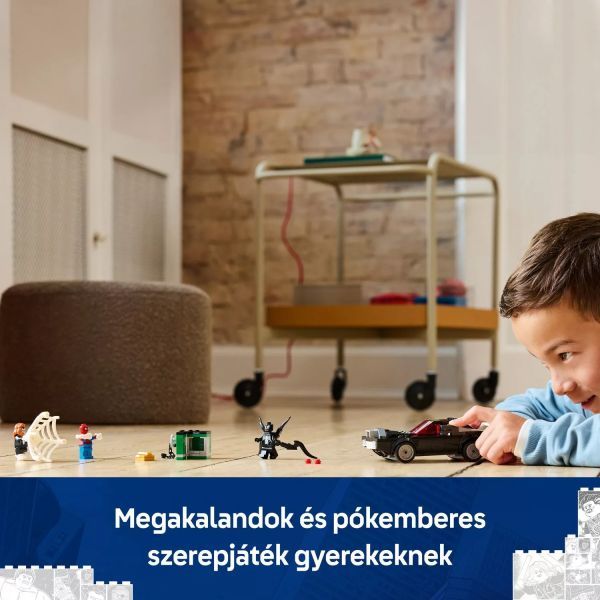 Zbudowany pojazd Venoma towarzyszy 3 minifigurki: Spider-Man z wyrzutnią pajęczyny, Venom z 4 mackami oraz Spider-Woman (Julia Carpenter) z elastyczną siecią, która jest wystarczająco duża, aby schwytać złoczyńcę. Niestandardowy pojazd Venoma ma broń po każdej stronie, dostępny silnik i otwierany kokpit. Venom może zostać umieszczony wewnątrz pojazdu po zdjęciu dwóch dolnych macek, które mogą być użyte do dalszej personalizacji pojazdu w stylu Venoma. Sejf z bryłkami złota inspirowany akcją z odgrywaniem ról między bohaterami a złoczyńcami. Sejf może być ciągnięty przez pojazd, który zawiera również schowek na bryłki złota. Dla jeszcze więcej cyfrowej zabawy, konstruktorzy mogą przybliżać i obracać modele w 3D oraz śledzić swoje postępy za pomocą zabawnej i intuicyjnej aplikacji LEGO Builder.