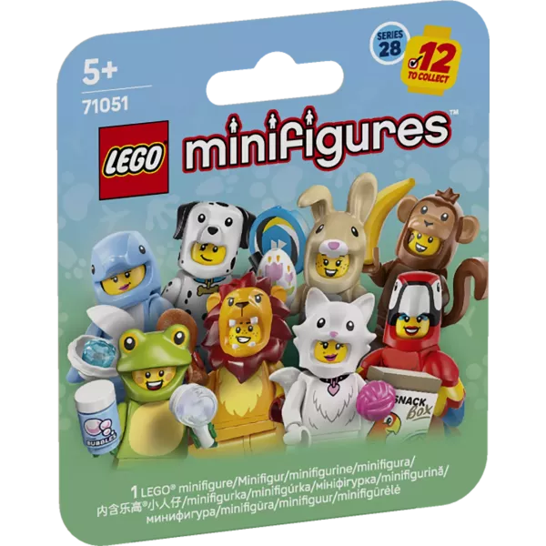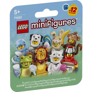 Dziewczynki i chłopcy w wieku 5 lat i starsi mogą odgrywać zabawne historie z jedną z 12 kolekcjonerskich figurek dostępnych w niespodziankowych opakowaniach serii LEGO® Minifigures, Zwierzęta Seria 28 (71051).