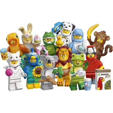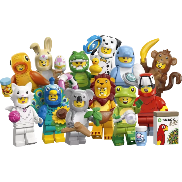 W każdym opakowaniu znajduje się 1 niespodziankowa minifigurka LEGO, a w sumie można zebrać 12 figurek zabawkowych, w tym papugę, lwa, żabę, krokodyla, dalmatyńczyka, złotą rybkę, uroczego królika, pawia, puszystego kota, koalę, delfina i zwierzaka w stroju małpy. Każda z 12 minifigurek znajduje się w zapieczętowanym pudełku niespodziankowym i każda z nich zawiera co najmniej 1 dodatkowe akcesorium.