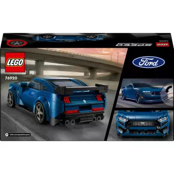 Pojazd zabawkowy LEGO® Speed Champions Samochód sportowy Ford Mustang Dark Horse (76920) to wiernie odwzorowany model z klocków, nawiązujący do potężnego wzoru znanego producenta samochodów amerykańskich. Dzieci w wieku 9+ pokochają kolekcjonowanie, konstruowanie, prezentowanie oraz odgrywanie scen akcji z tym niebieskim samochodem zabawką.