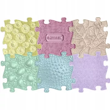 Zestaw zawiera 6 elementów maty w pastelowych kolorach.