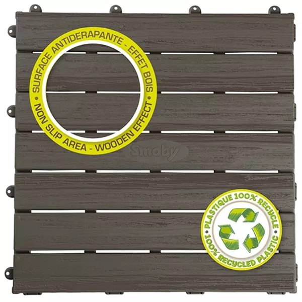Produkt wykonany jest z wysokiej jakości plastiku, odpornego na warunki atmosferyczne i promieniowanie słoneczne, nie odkształca się i nie traci blasku. Wymiary elementów: 45 x 45 x 1,5 cm. Zestaw podłogowy ma szczegółowy design i jest antypoślizgowy.