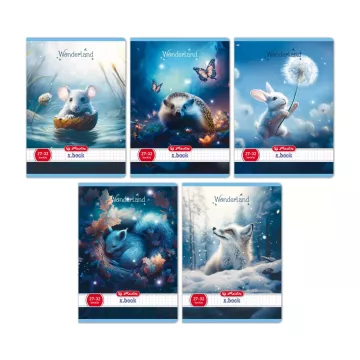 Wonderland: Zeszyt A5 w kratkę z magicznym designem, idealny do użytku szkolnego.